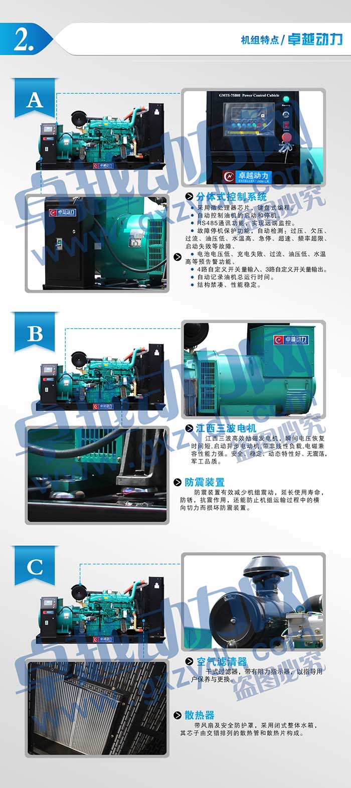 采用國(guó)內(nèi)先進(jìn)的柴油發(fā)電機(jī)組專用多功能智能控制模塊,具有自動(dòng),手動(dòng)啟動(dòng)控制(可選)、自動(dòng)保護(hù)功能、自動(dòng)保護(hù)功能、自動(dòng)市電/發(fā)電轉(zhuǎn)換、自動(dòng)并機(jī)及遠(yuǎn)程通訊和液晶顯示頻顯示各種參數(shù)等功能,有多種智能控制模塊供選擇。